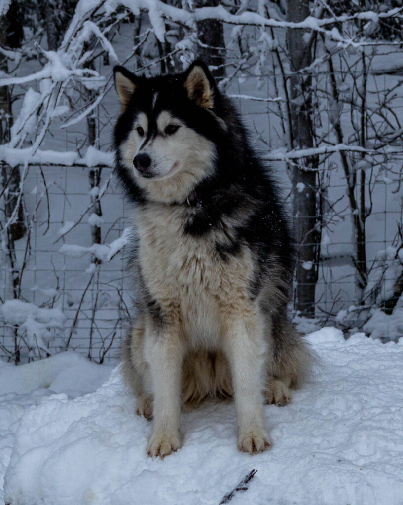 - Lotta kam mit 9 Monaten zu uns in die Oberpfalz – „aussortiert“ in Schweden, weil sie zu klein ist für den vielen Schnee in Schweden und auf den Touren im Schnee versackt – was will man auch bei 15 kg Körpergewicht „erwarten“.